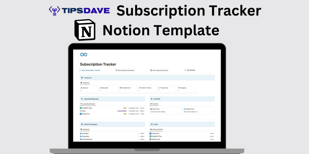 The TipsDave Subscription Tracker Notion Template โ your one-stop-shop to stay on top of all your subscriptions effortlessly. ๐๐ช Whether it's streaming services, gym memberships, or those sneaky free trials that always find a way to gobble up our hard-earned cash โ we've got you covered!